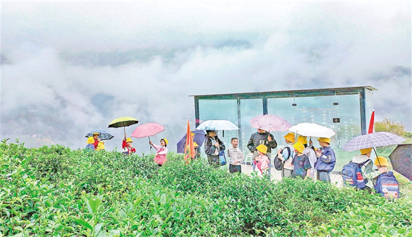 国庆期间,孩子们在紫阳县向阳镇的富硒茶观光园,感受自然风光与茶文化的独特魅力。 储茂银 摄