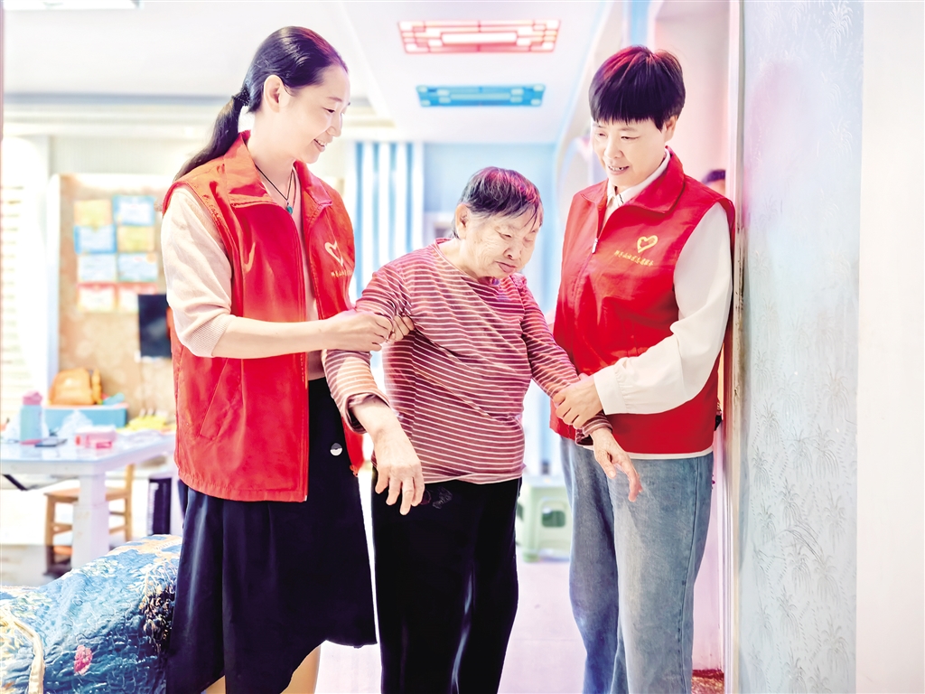志愿者搀扶行动不便老人