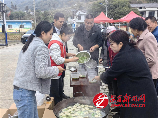 在广场边的临时炉灶上,村“四支队伍”人员分工协作,一起为老人们包着饺子。当热气腾腾的饺子端上桌,老人们的脸上洋溢着幸福笑容。餐后的政策宣讲环节干货满满,村工作人员用通俗语言讲解城乡合作医疗收缴标准与报销流程,结合老年群体常见病种举例说明,现场为3位老人完成缴费登记。