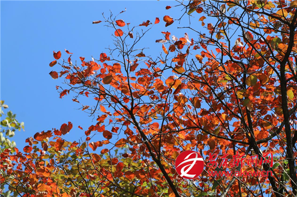 10月27日,汉滨区早阳镇高跃村迎来晴好天气,在阳光的照射下,满山的红叶红得似火,在蓝天的映衬下,愈发显得美丽壮观。每年霜降前后,早阳镇辖区的数千亩黄栌树受光照、温差等因素影响,会逐渐由绿变红,形成“万山红遍”的壮观景象,吸引不少游客和市民前来打卡赏红叶。(通讯员 唐明义)