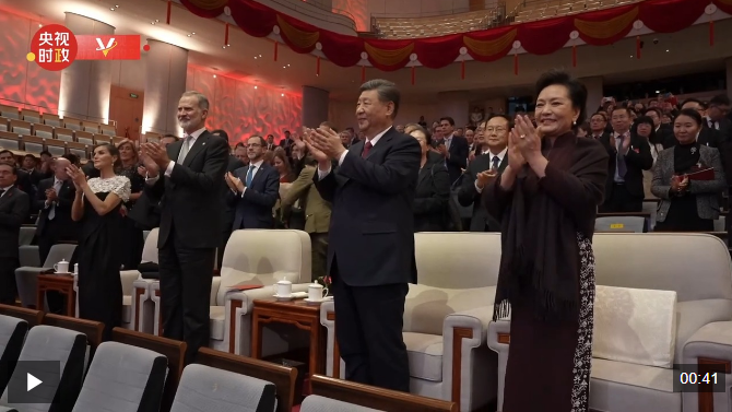 11月12日晚,国家主席习近平和夫人彭丽媛在北京国家大剧院同西班牙国王费利佩六世夫妇一同观看西班牙皇家剧院音乐会。