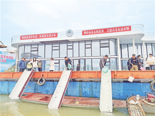 近年来,安康瀛湖生态旅游区持续开展增殖放流工作,近五年已累计向库区投放鲢、鳙、鲤、鲫、蒙古鲌、大眼鳜等苗种110余万尾,通过“以鱼净水、以鱼养水”的方式,有效优化水生生物种群结构,提升水域生态环境质量,巩固禁捕成果,推动区域生态文明建设与渔业可持续发展。