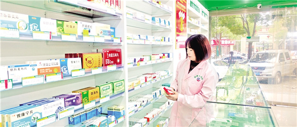 爱心联盟药店工作人员整理药品