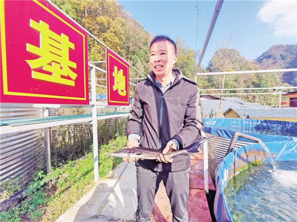 在木竹村陆基养鱼基地,党支部书记祝振攀望着池里的中华鲟喜上眉梢:“这批鱼能给村集体带来10万元以上利润,高峰时一天要卖400多条鱼,基本上都供应给镇上的民宿和农家乐了!今年我们村集体经济目标是突破50万元。”