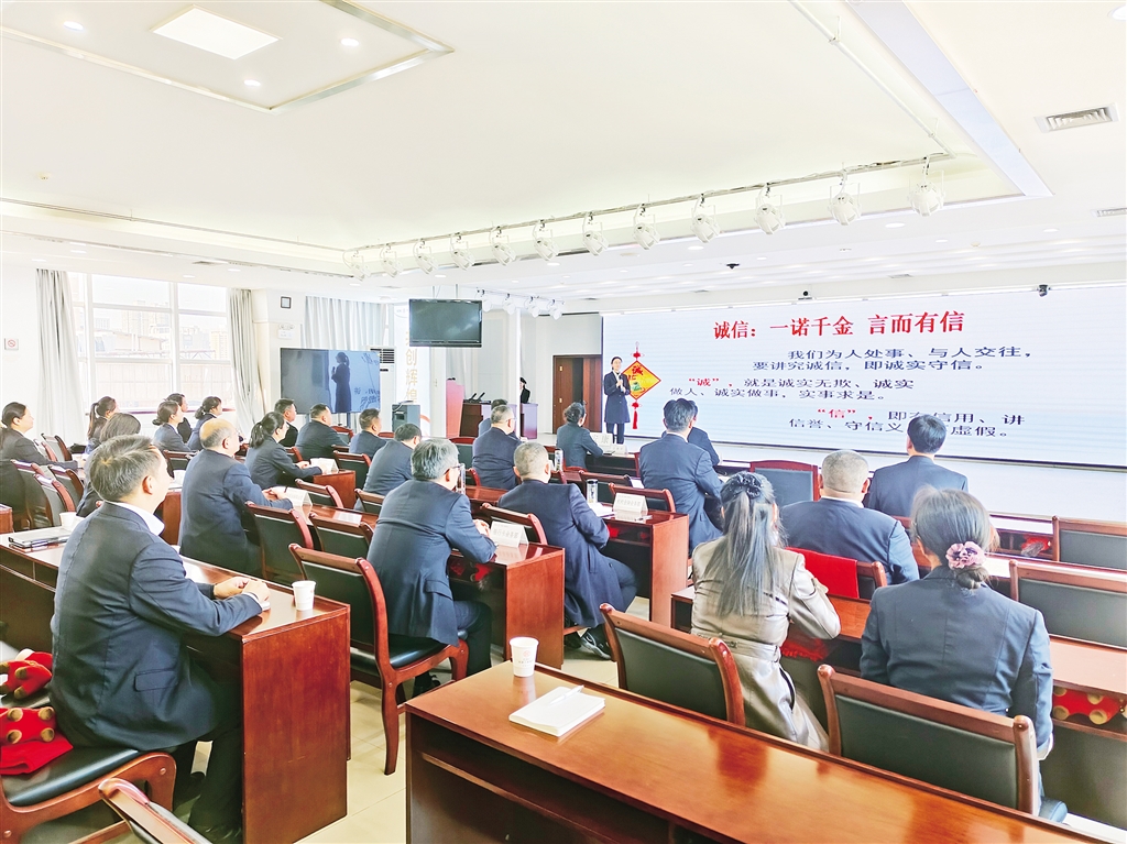 本网讯(记者 唐正飞 通讯员 杨光婷)“我们为人处事、与人交往,要讲究诚信,即诚实守信……”11月21日,中国工商银行安康分行会议室一场“以诚立身,以信致远”主题宣讲会正在火热进行。工作人员化身诚信“宣讲员”,解读“诚信”内涵,分享践行诚信故事。