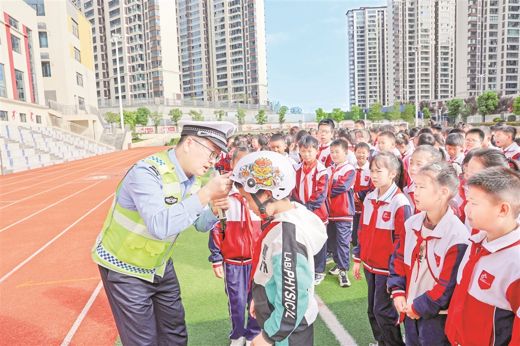 9月24日,高新区在高新七小开展“我劝妈妈戴头盔”活动