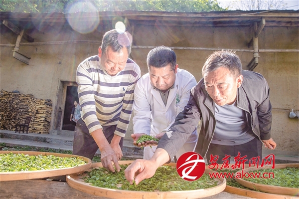 “十四五”期间,我市持续推进茶产业发展,努力实现茶产业“四时有收”。图为紫阳白茶非遗制作技艺代表性传承人在高桥镇裴坝村,向茶农推广紫阳白茶非遗制作技艺。 李胜璋 摄