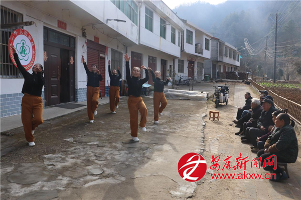 在宁陕县筒车湾镇筒车湾社区白果树组一个小地名叫四块田的地方,冬日的清晨正被欢快的旋律唤醒,李友发与几位老人坐在院坝边看得格外投入。