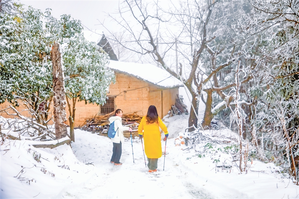 元旦期间,平利县以“冬赏雪·趣平利”为主题,创新推出冰雪文旅融合系列活动,打造集观赏、体验、美食于一体的冰雪乐园。图为1月2日,游客在平利县八仙镇天书峡景区游玩。 沈奕君 摄