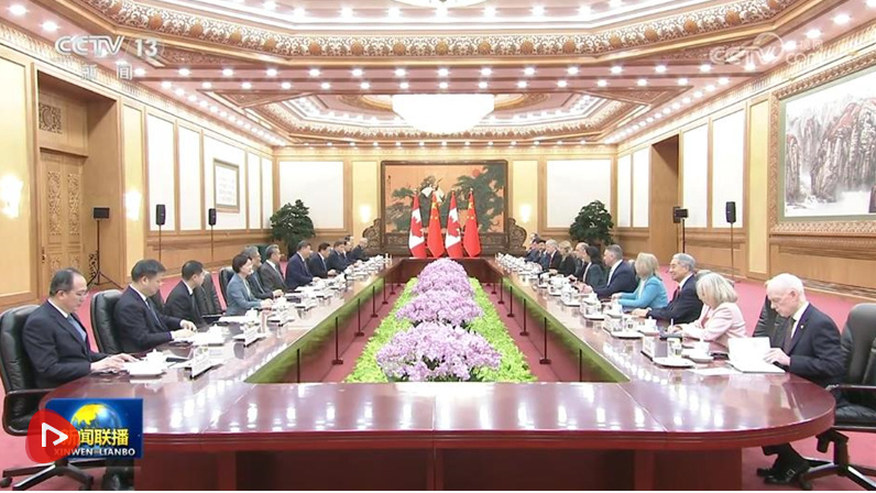 习近平指出,去年10月,我们在韩国庆州会见,开启了中加关系转圜向好的新局面。双方就恢复和重启各领域合作深入探讨,取得积极成果。中加关系健康稳定发展符合两国共同利益,也有利于世界和平稳定和发展繁荣。双方要本着对历史、对人民、对世界负责任的态度,推进构建中加新型战略伙伴关系,推动中加关系迈入健康、稳定、可持续的发展轨道,更好造福两国人民。