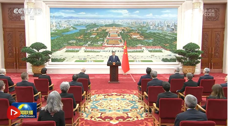 仪式结束后,习近平在北京厅对使节们发表讲话。