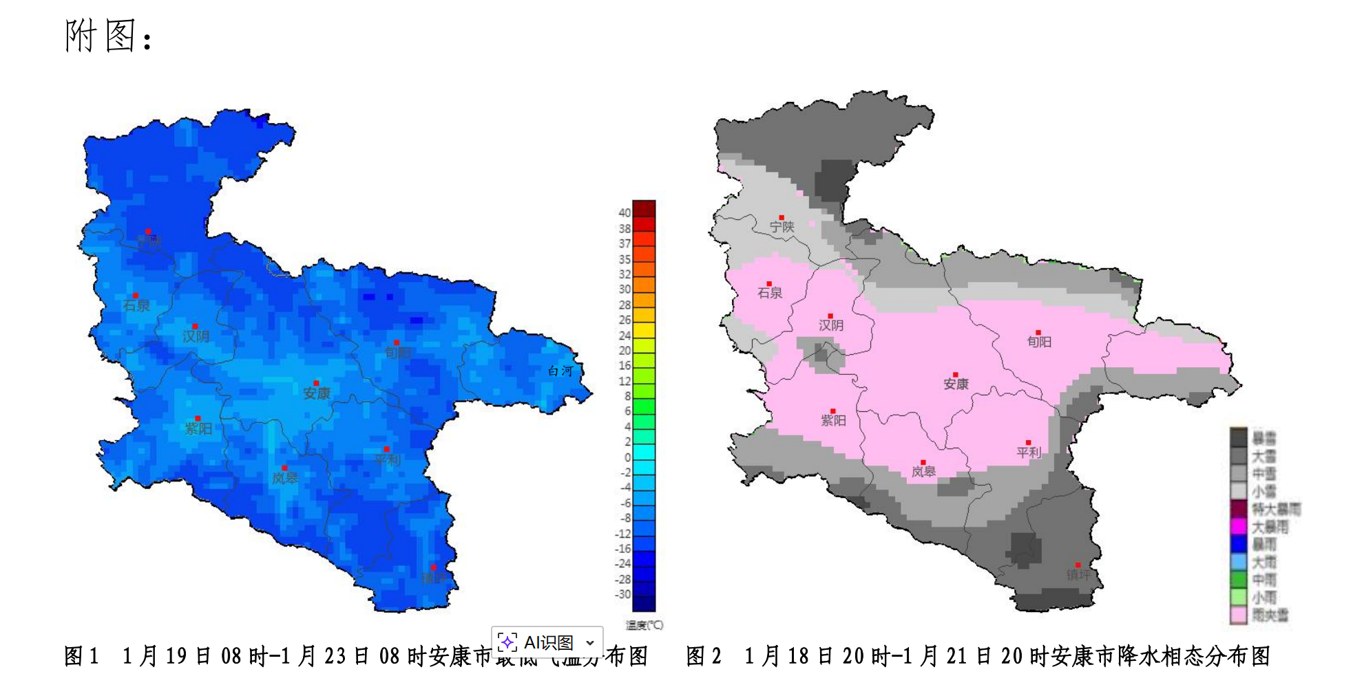 1月19日:白天小雨或雨夹雪转小到中雪,秦巴山区及东部高山局地大到暴雪,夜间零星小雨雪转阴天,川道地区-2~6℃,高山地区-4~3℃;