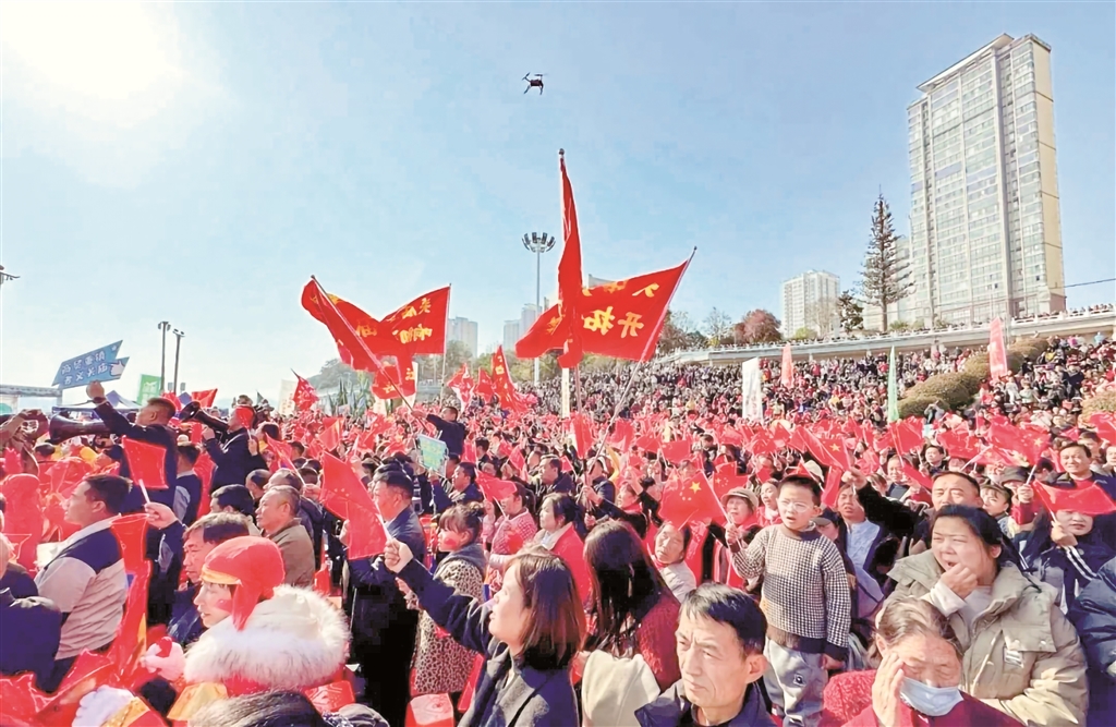 “舞台上没有演员,只有干部和群众。”江北片区的村歌里,传唱着鲜活的家乡故事,展现着昂扬的精神风貌。群众将村史传说、民俗风情、产业发展融入歌词旋律,从田间耕耘到社区日常,从红色记忆到生态美景,每一首歌都是一段江北发展的生动注脚。有歌曲弘扬“孝亲敬老传家风”,有旋律赞颂“产业兴旺富家乡”,有乐章描绘“邻里和睦乐融融”,原汁原味的演绎饱含着乡亲们对家乡、对生活、对未来的真挚情感。