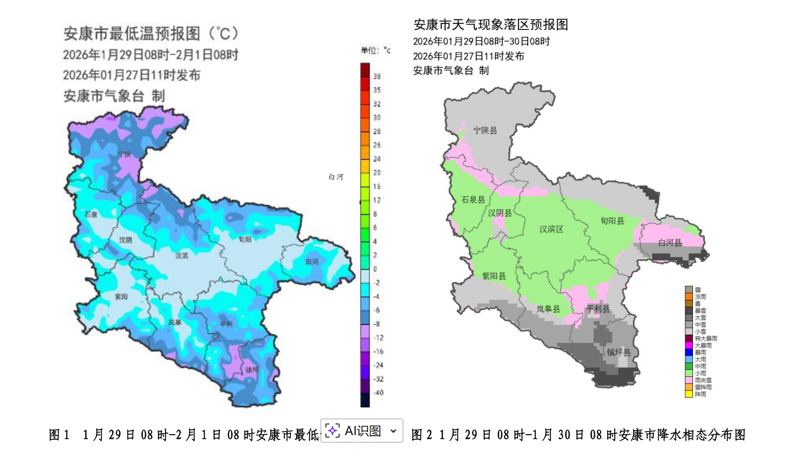 28日夜间至30日气温持续走低,过程全市大部平均气温下降4~6℃。1月31日雨雪天气结束,受前期雨雪天气和冷空气持续影响,气温仍较低,预计最低气温将出现在1月31日或2月1日清晨,川道地区-4~-1℃,中高山地区-10~-5℃,局地低于-10℃。过程期间山区局地有5~6级阵风。