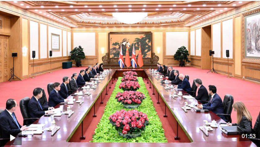 1月29日上午,国家主席习近平在北京人民大会堂会见来华进行正式访问的英国首相斯塔默。