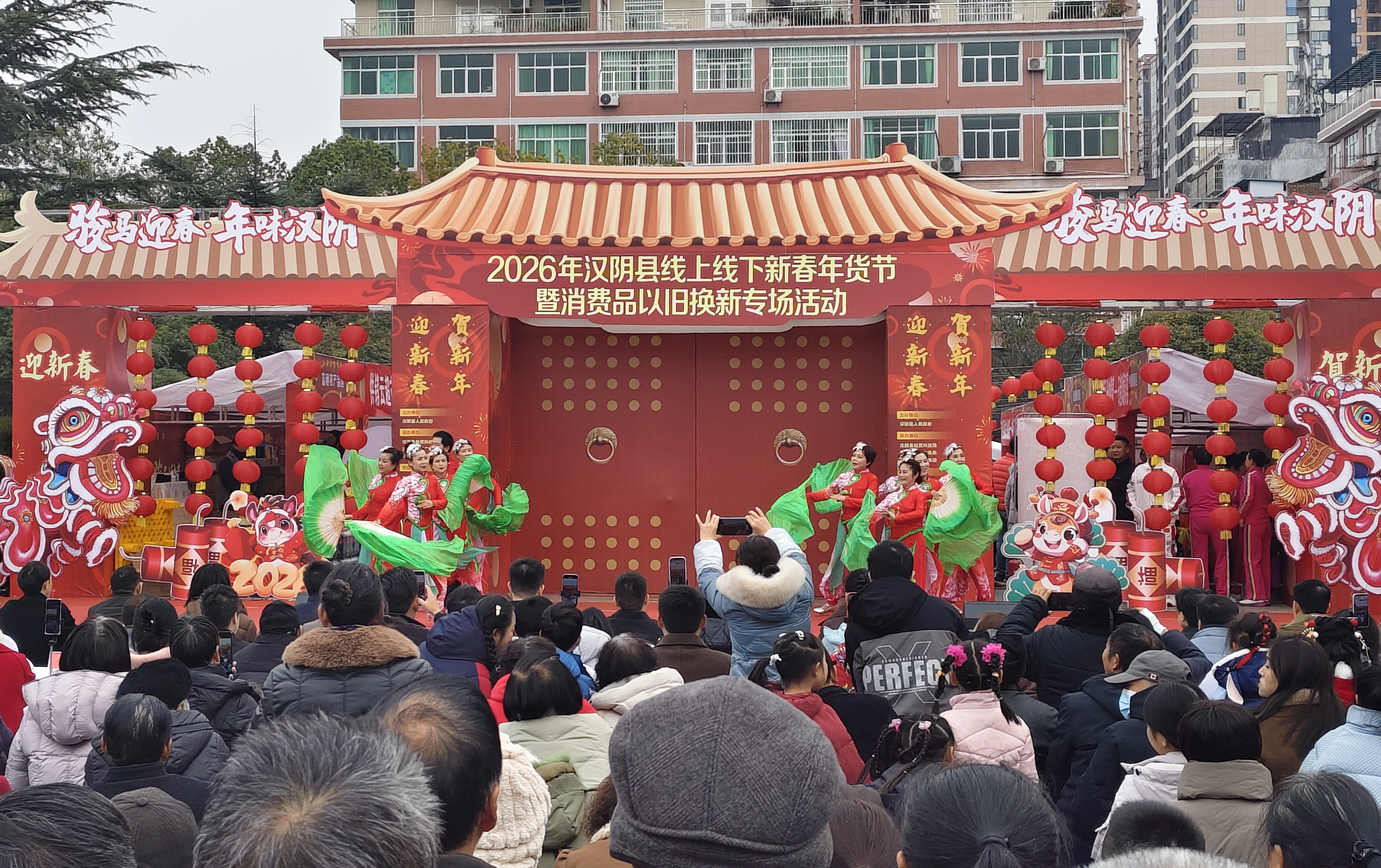 1月30日,汉阴县举行2026年线上线下新春年货节暨消费品以旧换新专场活动,吸引了70余家参展商参加。活动现场,游客们欣赏文艺演出、品尝美食、采购年货,让冬日里的县城变成了欢乐的海洋。