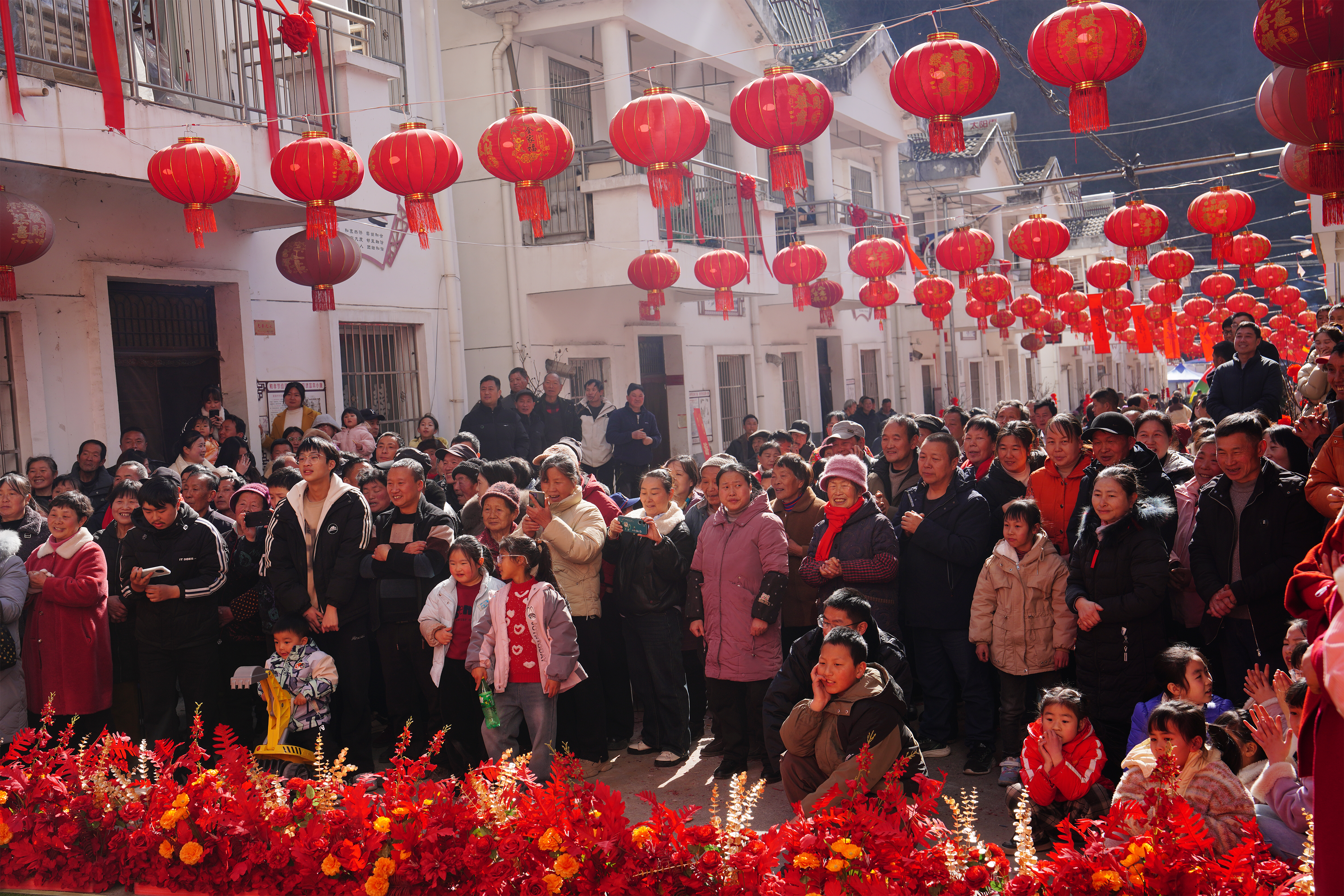 △ 2月2日,村民和游客观看新场镇“村晚”节目表演。