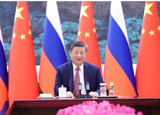 习近平表示,开年以来,国际形势愈发动荡。作为负责任大国和联合国安理会常任理事国,中俄两国有义务推动国际社会坚守公平正义,坚定捍卫二战胜利成果,坚决维护以联合国为核心的国际体系和国际法基本准则,携手维护全球战略稳定。