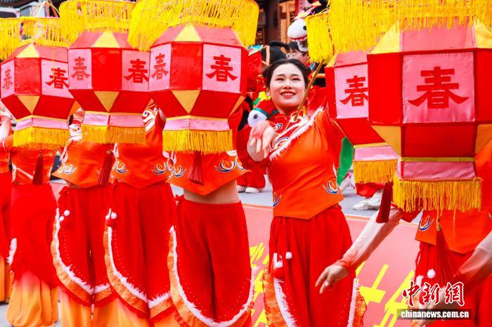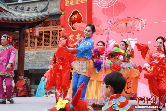 2月4日,全国“村晚”示范展示点活动暨旬阳市“我在古镇过大年”文旅活动在陕西安康旬阳市蜀河镇启动。活动紧扣“古镇年味”元素,融合汉江航运文化、乡村振兴等内容,以村歌联唱、戏曲荟萃、农民走秀、农产品展销等形式,营造出了浓厚的春节氛围。图为活动现场。 张昊 摄