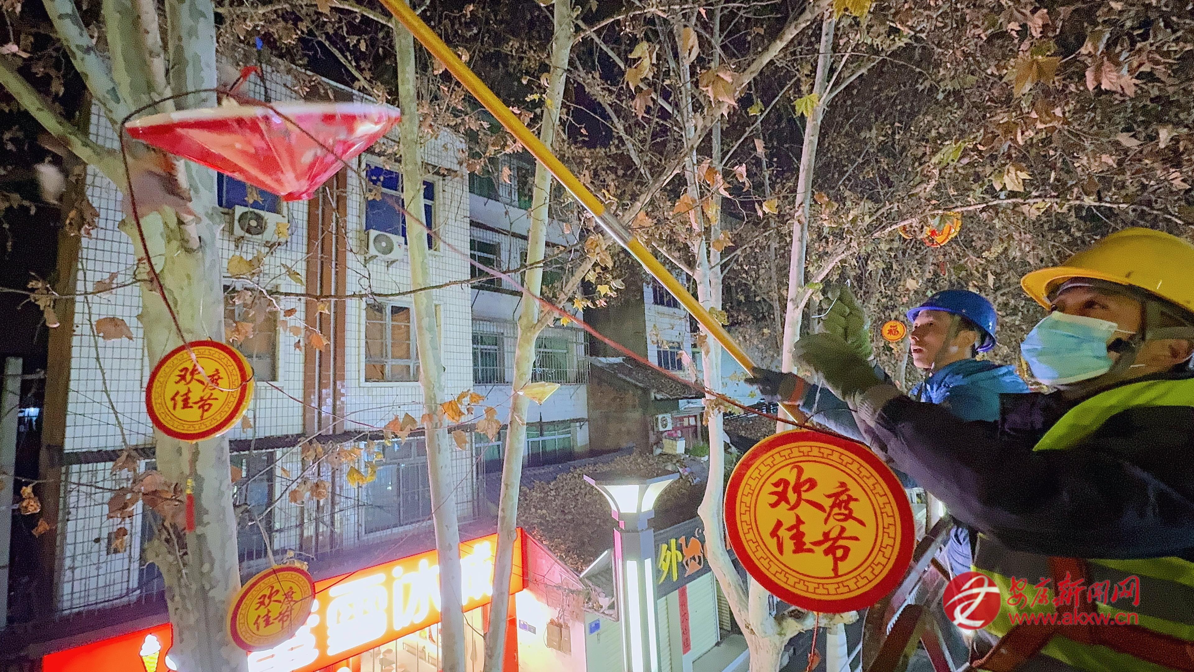 为营造喜庆祥和的节日氛围,市市政园林处以“金州骏马贺新春”为主题,对安康中心城区关键点位进行春节美化作业。此次工作将马年生肖文化与安康本土特色深度融合,通过悬挂灯饰、装饰挂件等方式,全面提升城市夜间景观颜值,营造新春氛围。图为2月5日,工人在金州路开展亮化作业。钱运立 杨冉 摄
