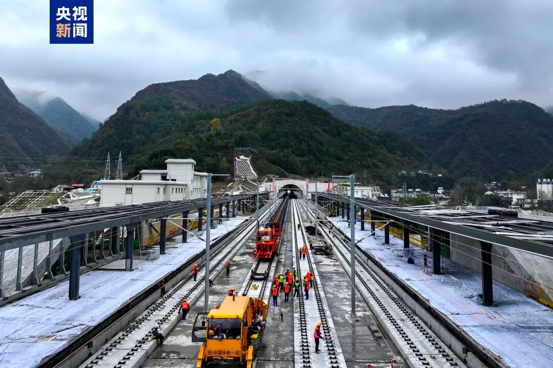 西康高铁穿越秦巴山区,桥隧比高达94%。施工单位需在复杂的地质条件下完成双线全长共341.49公里的钢轨铺设,面临道岔运输难、交叉作业多等严峻挑战。