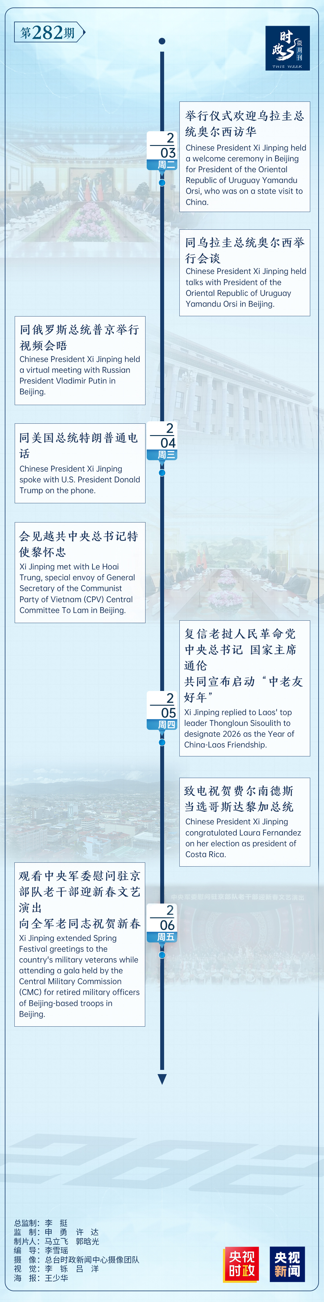 时政微周刊丨总书记的一周(2月2日—2月8日) 2026-02-09 06:00:00 浏览量1613809