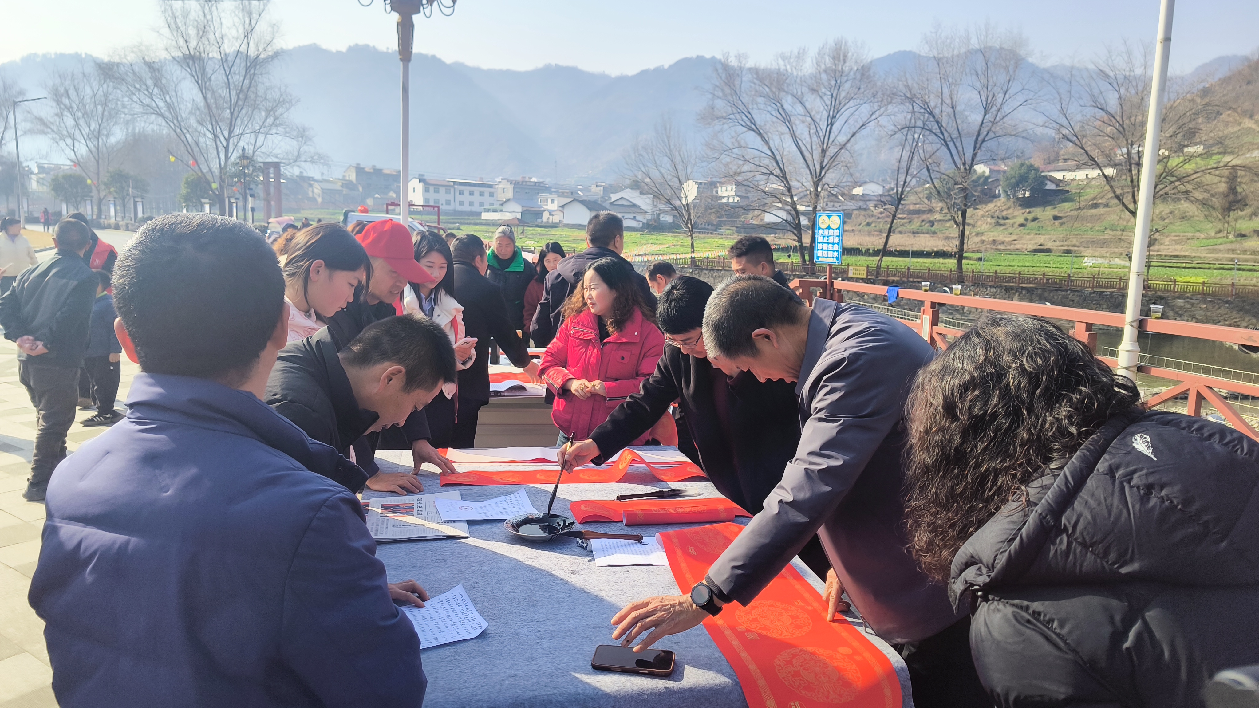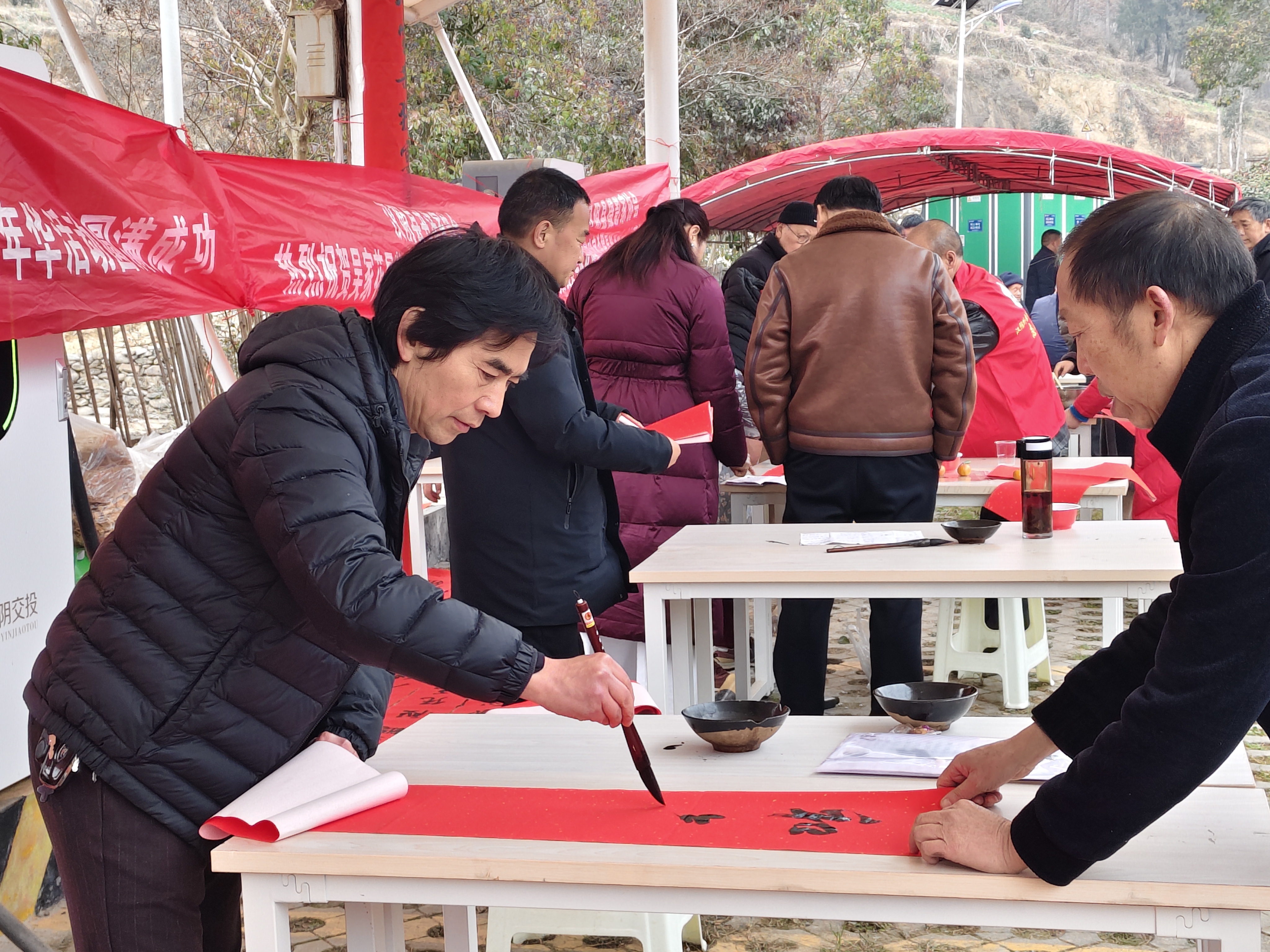 2月5日,平利县文联、书协联合大贵镇公共文化服务共同体分中心、新时代文明实践所,在集镇亲水广场开展义写春联活动,以翰墨传递新春祝福,用文化赋能文明实践。 陈青青 摄