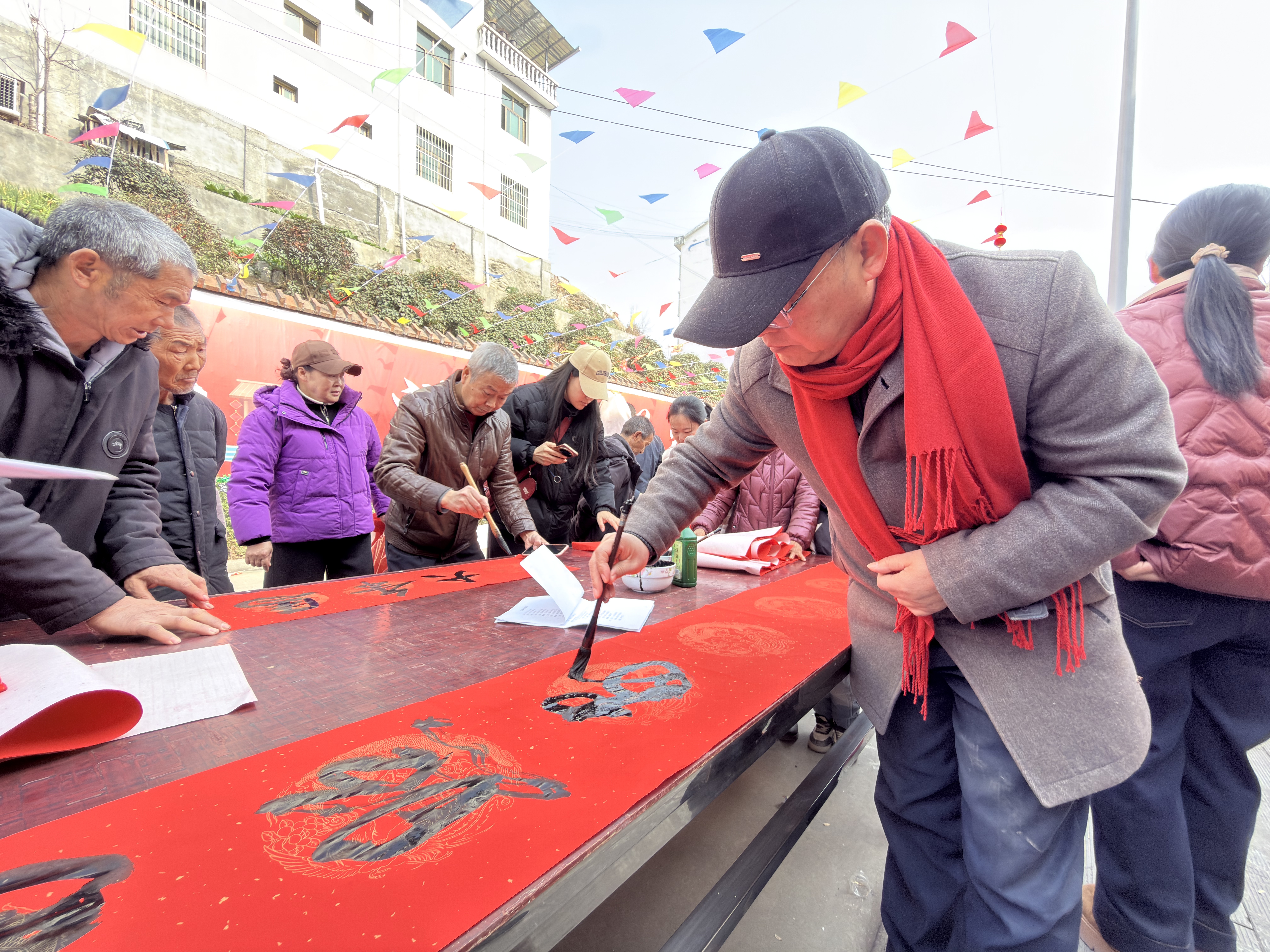 集市现场还设置了义写春联、线上直播带货和特色美食评鉴区。市文联和市民间文艺家协会的书法志愿者挥毫泼墨,为群众送上新春祝福;主播同步推介本地特色农产品,通过直播拓宽销售渠道;群众边品尝特色美食边交流感受,现场烟火气十足。