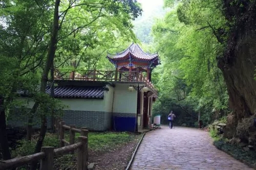 远观东山之巅,阁楼崇丽,朱柱黄瓦,苍林映衬,孑然耸峙。行至坡底,拾阶而上,待达近前,但见一楼三叠,雕梁画栋,四方飞檐,六角攒尖,鎏金宝顶,直指苍穹,煞是壮观。