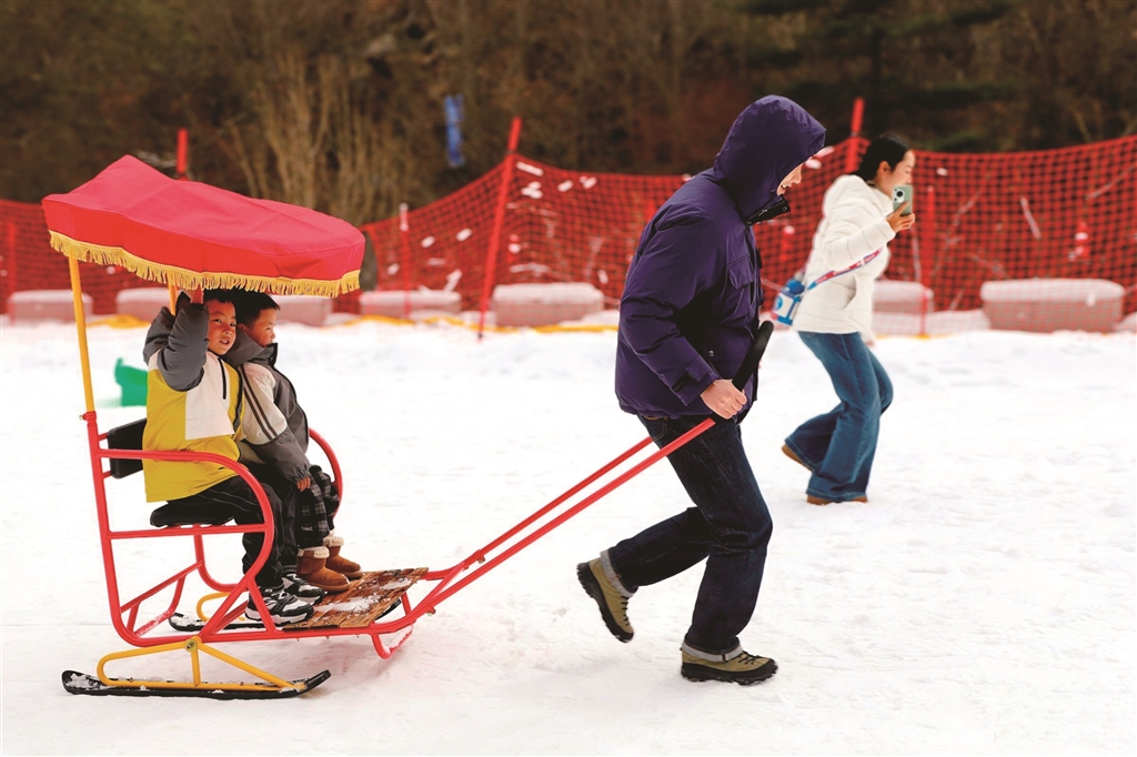 2月18日,游人在宁陕县皇冠雪乡体验冰雪娱乐项目。当日皇冠雪乡接待游客1813人次。黄太萱 摄