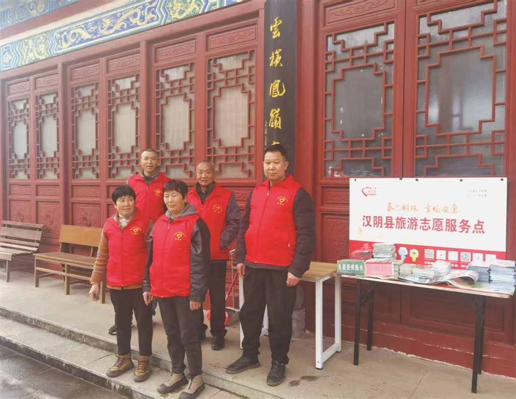春节期间,志愿者在汉阴县龙岗公园坚守岗位。他们放弃与家人团聚的时光,用行动诠释奉献与担当,守护游客的平安与欢乐。王磊 摄