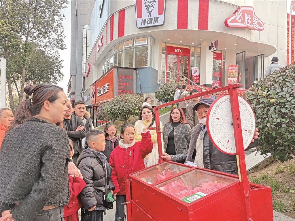 2月17日,石泉县樱花广场,市民体验传统打彩游戏。刘丹 摄