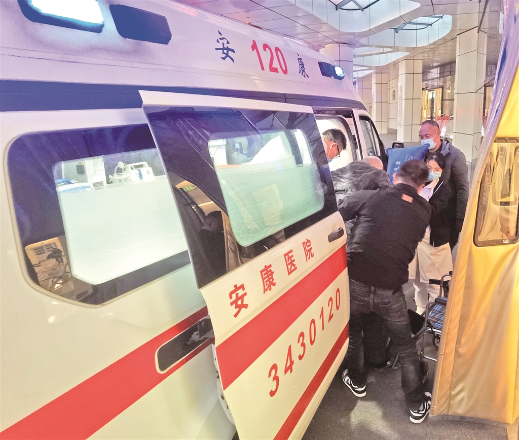 2月19日傍晚时分,安康市中心医院医护人员坚守在工作一线。吴定国 摄