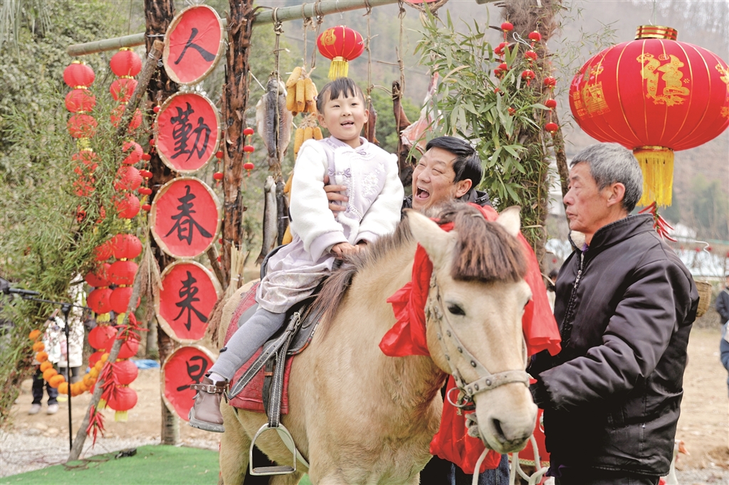 春节期间,宁陕县城关镇渔湾村举行“回宁陕过大年”民俗展演。图为游客体验年俗活动。杨宁 摄