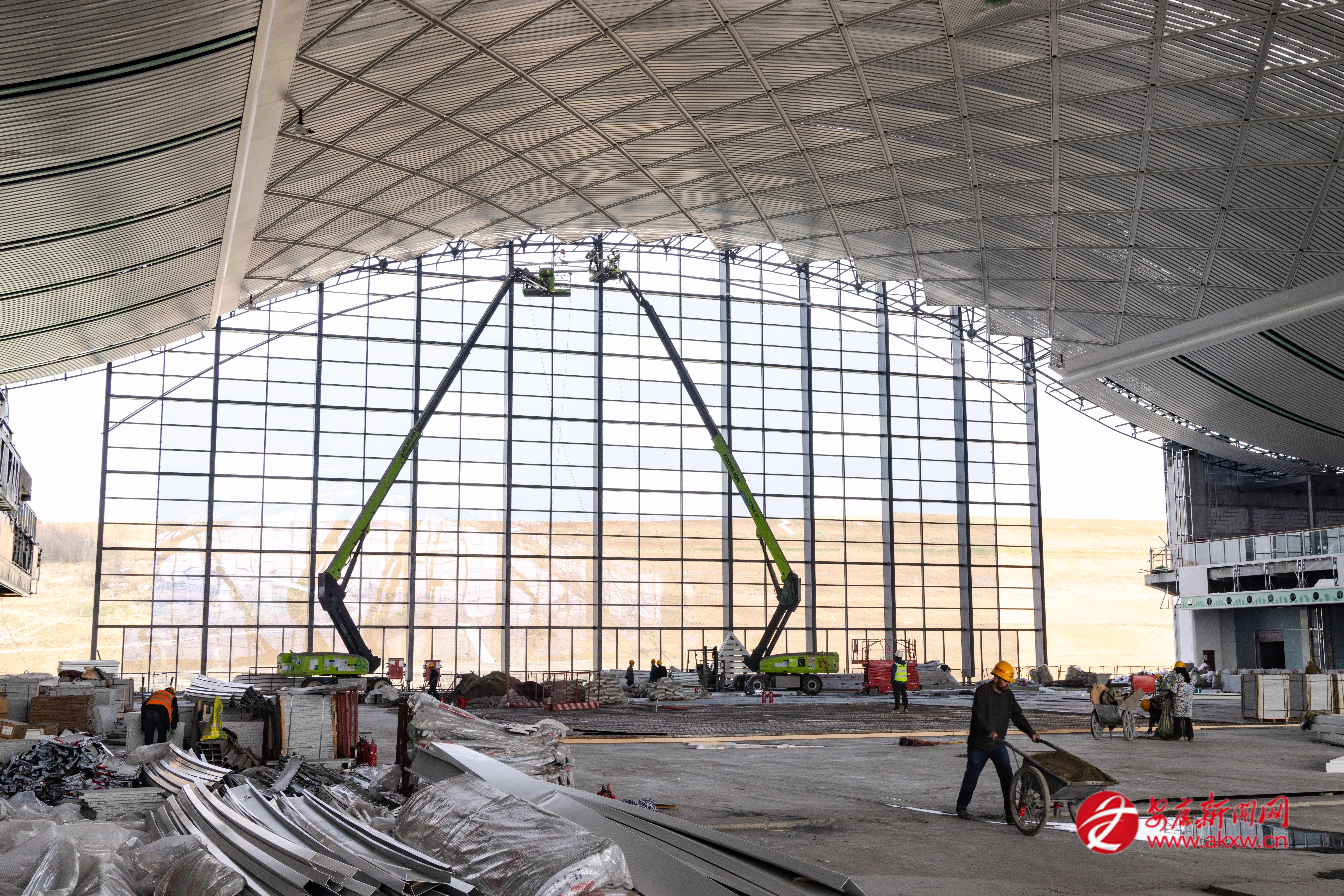 2月22日,西康高铁安康西站建设工地一派繁忙景象。据了解,自2月8日安康西站项目建设进入攻坚提速阶段,为确保工程如期交付投用,春节期间,中铁建设西康站房项目部在落实管理、网格化监督、夯实安全责任、安排好节日期间职工生活的同时,科学调度、精心组织,扎实推进站房装饰装修、幕墙安装等施工进度。 郭圣杰 摄