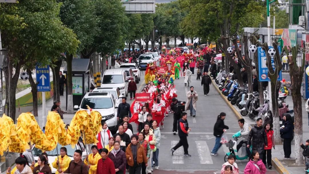 在主会场定点展演环节,各支队伍各显神通。率先登场的威风锣鼓队由老中青三代村民组成,整齐划一的动作、雄浑震撼的节奏,敲出了乡村振兴的精气神。彩狮队则展现了半个多世纪的传承坚守,这支成立于1972年的队伍,队员年龄跨度横跨四代,红绸舞动间,雄狮腾跃翻滚,赢得阵阵叫好。