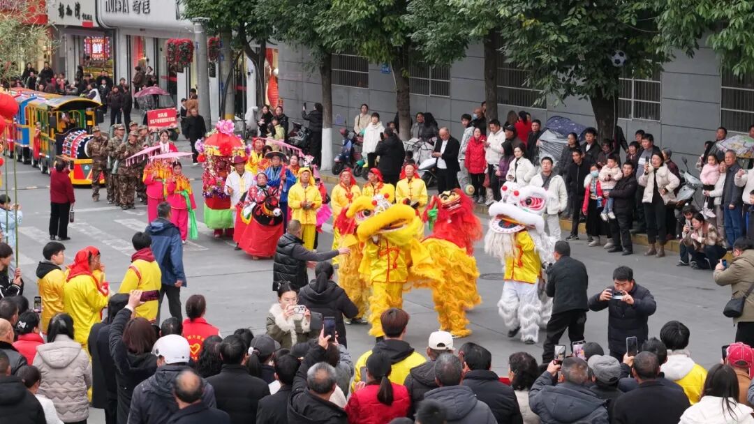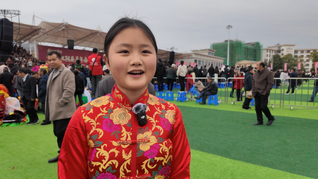 观众熊苗苗:很远就被锣鼓喧天的场景给吸引了,看到有很多队伍在演出,有年纪大的叔叔阿姨,也有很小的弟弟妹妹。这个场景真的非常热闹,让人看着很开心,年味十足。