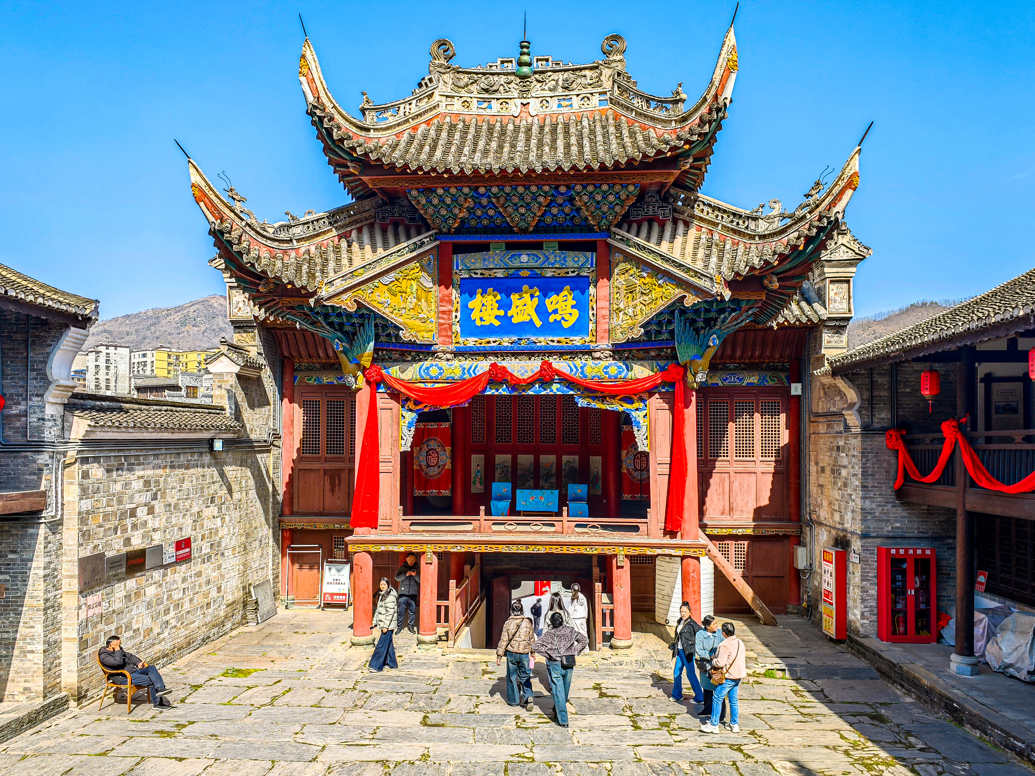 游客游览鸣盛楼