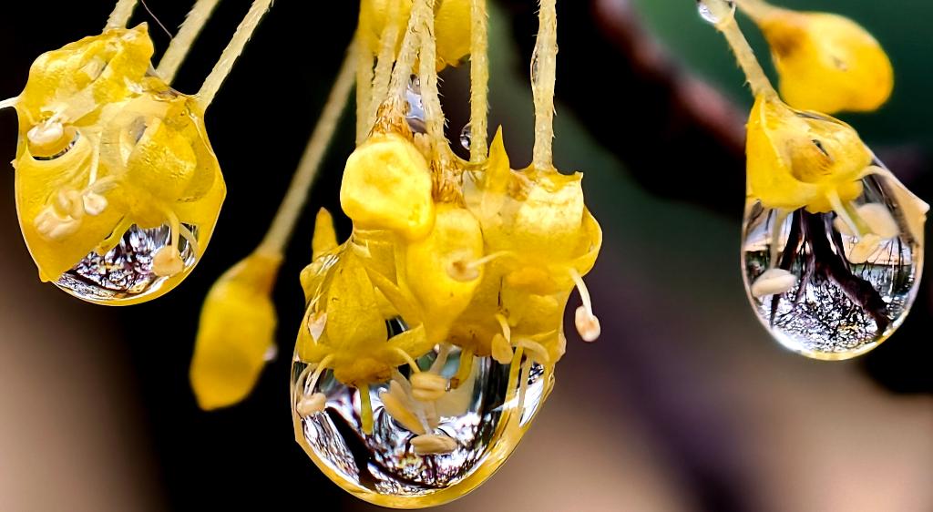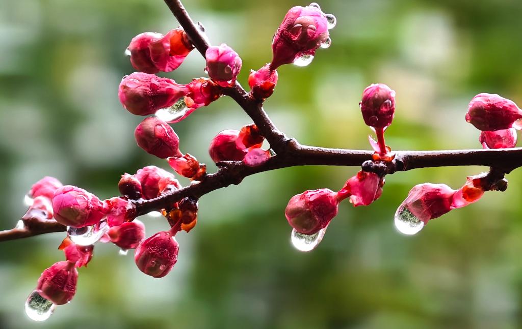 这是3月1日拍摄的河南省洛阳市街头花苞上的露珠。一场春雨过后,晶莹剔透的雨珠缀满枝头,勾勒出别样春日景致。新华社发(高山岳摄)