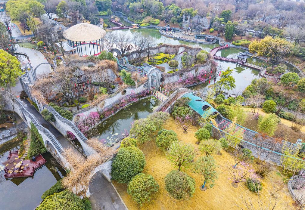 近日拍摄的位于江苏省扬州市江都区丁伙镇的朴园春色(无人机照片)。春意渐浓,各地美景吸引人们外出游玩赏景,尽享春日好时光。新华社发(任飞摄)
