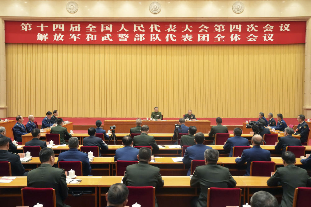 3月7日下午,中共中央总书记、国家主席、中央军委主席习近平出席十四届全国人大四次会议解放军和武警部队代表团全体会议并发表重要讲话。新华社记者 李刚 摄
