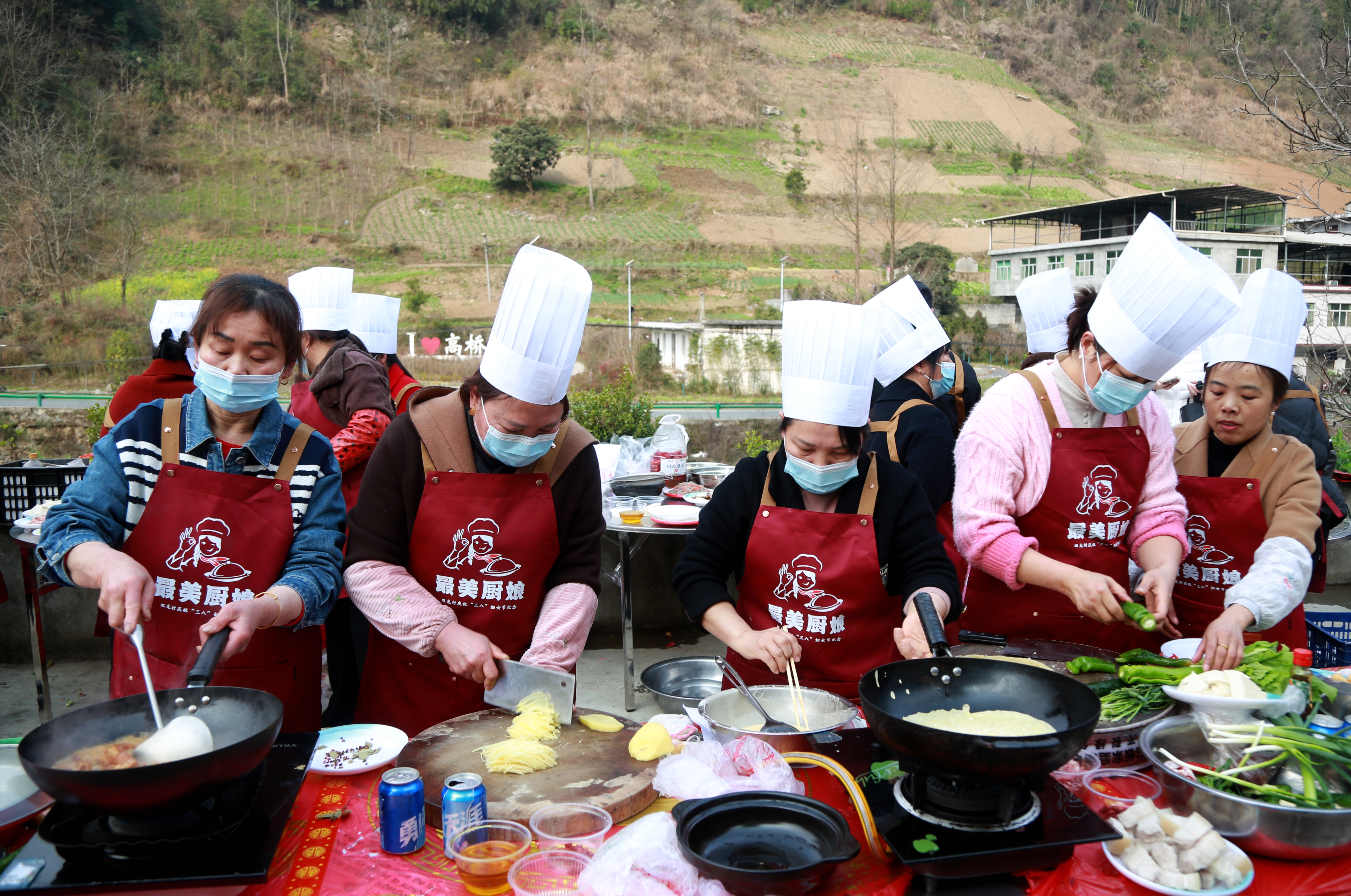 紫阳县高桥镇双龙村举行最美厨娘争霸赛,欢庆“三八”国际劳动妇女节。李谢军 摄