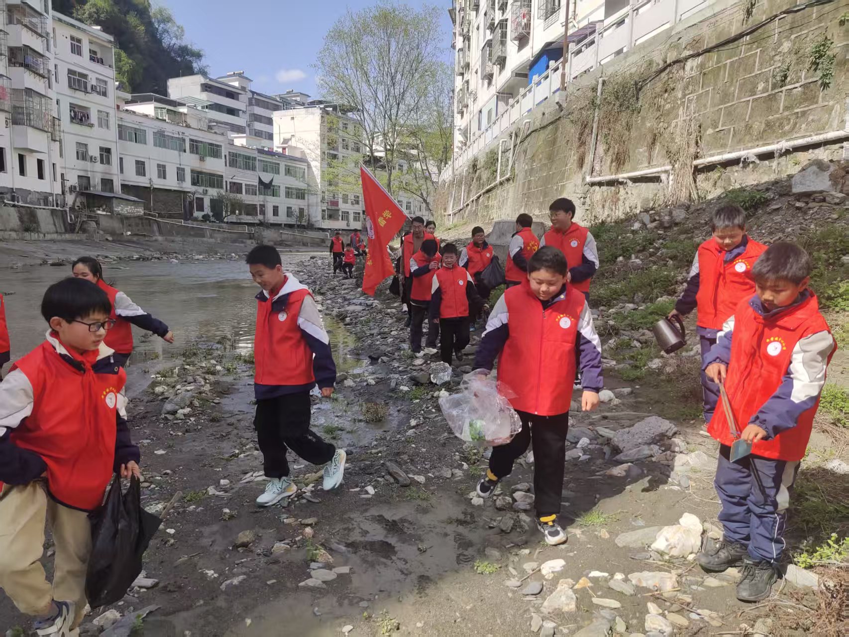 白河县西营镇中心小学组织学生组成志愿服务队,前往河道清理垃圾,以实际行动践行雷锋精神。汪义春 摄