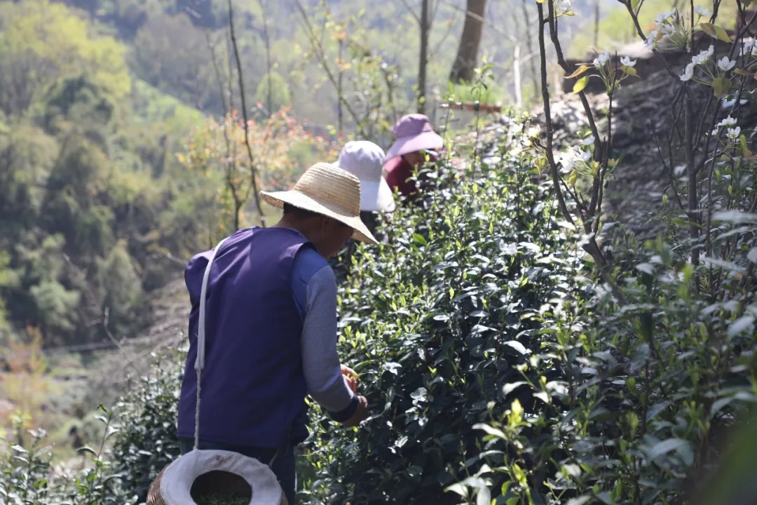 “今年雨水充足,芽头长得饱满又鲜嫩,品质特别好。光今天上午采的鲜叶,就能卖500多元。”张再胜一边忙着采茶,一边算起了收入账。