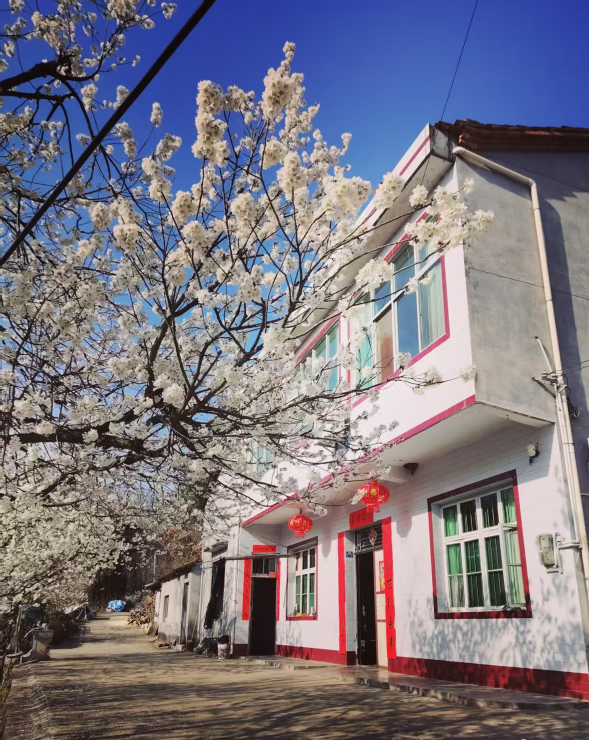 城关镇月河村庭院旁的樱花烂漫盛放