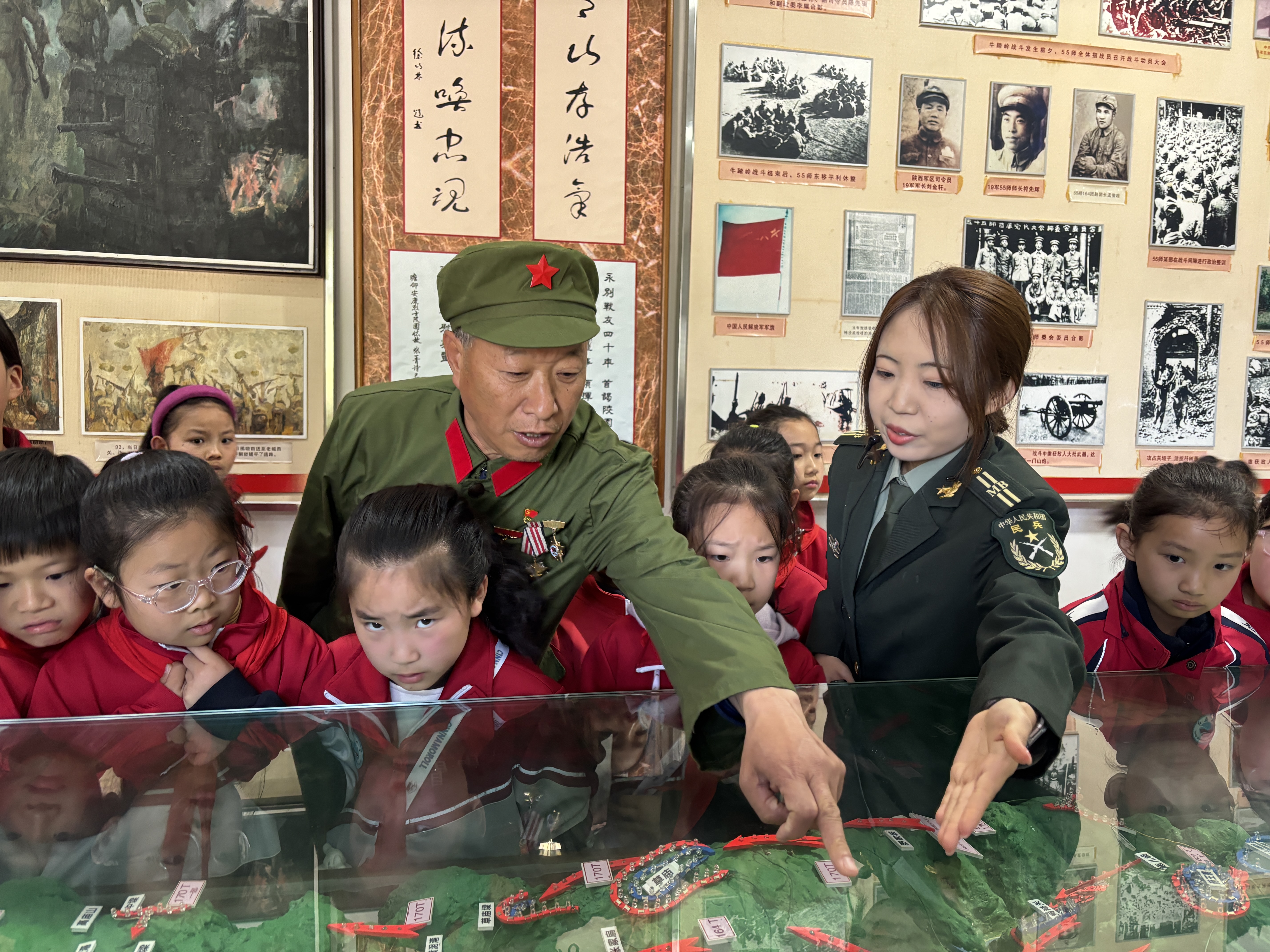 4月1日,汉滨区退役军人事务局在安康烈士陵园纪念碑广场举行“追寻·2026·清明祭英烈”祭扫活动,共同追忆峥嵘岁月,缅怀革命先烈,传承红色基因。图为老兵给学生讲述战斗故事。汪海玉 摄