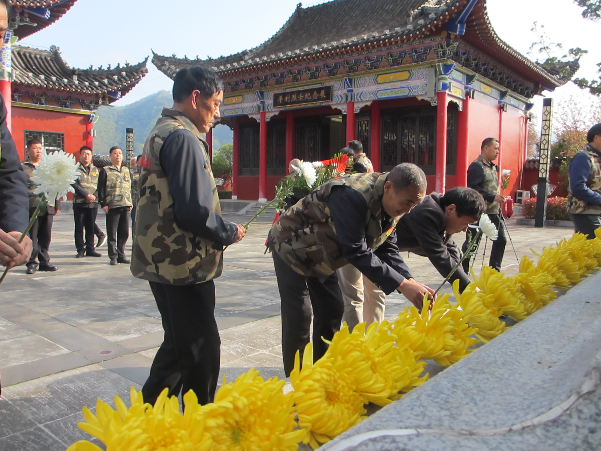 3月31日,平利县退役军人协会在革命烈士陵园开展“追寻2026清明祭英烈”主题活动,退役军人们手捧菊花,表达对革命先辈的追思与崇敬。 刘应珊 刘沣 摄