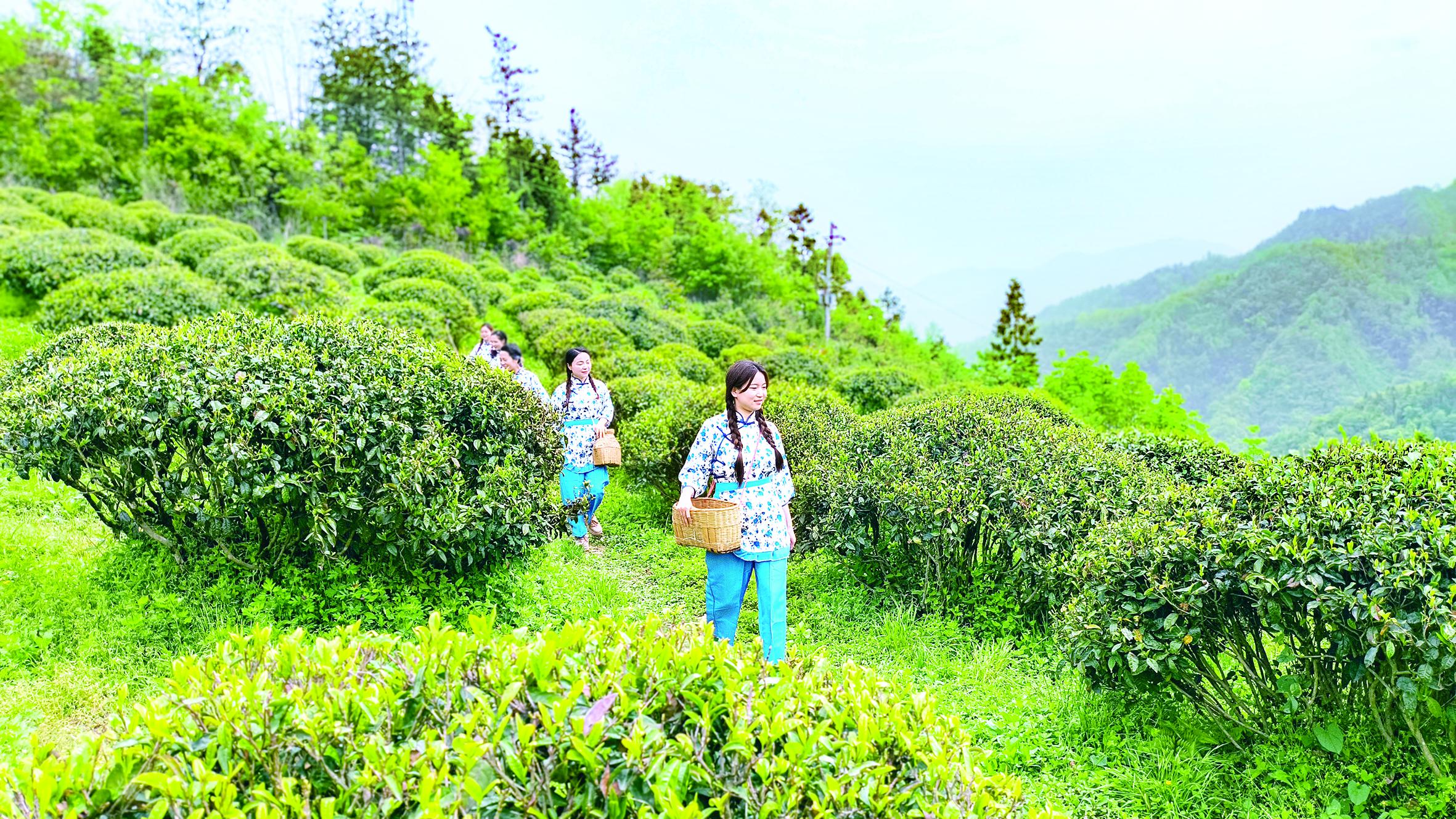 4月7日,紫阳县双桥镇村民走进莲花村的高山古树茶园,采摘茶鲜叶。储茂银 摄