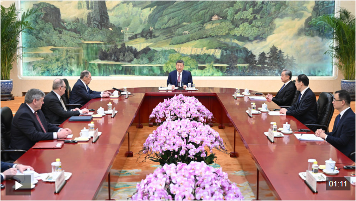 拉夫罗夫说:“尊敬的主席先生,此次会见体现了您对俄中新时代全面战略协作伙伴关系的重视。俄中在贸易、经济、投资、人道主义、文化等领域的合作发展势头良好,您和普京总统给我们未来合作擘画了蓝图。”