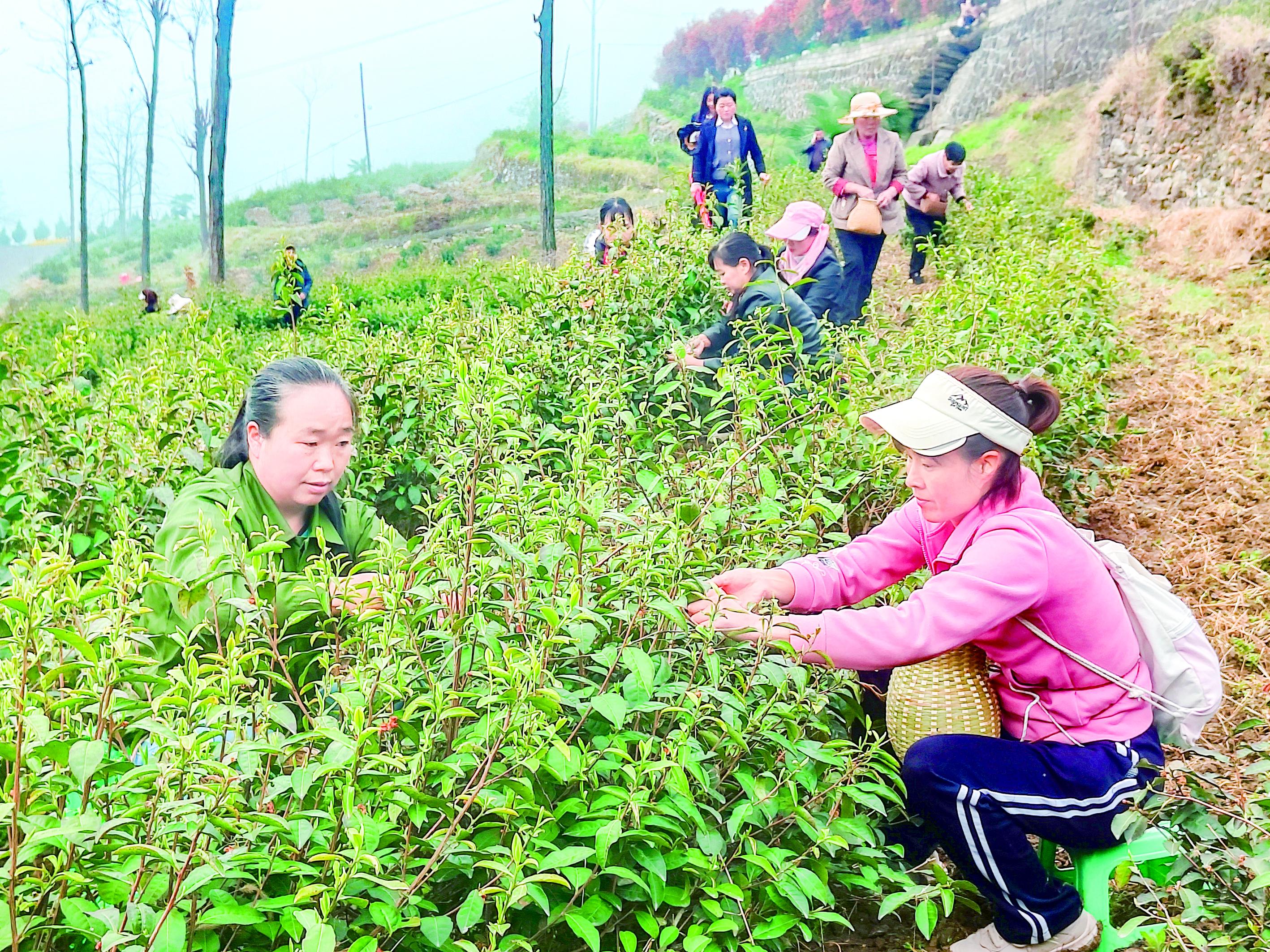繁忙的采茶季,也为周边村民搭建起家门口的增收平台。进入采茶期后,茶园日均用工50余人,高峰期超百人,村民人均日收入可达100元至150元。“我家离得近,每年这个时候都来采茶,一季下来能挣几千元。”正在采茶的村民说。